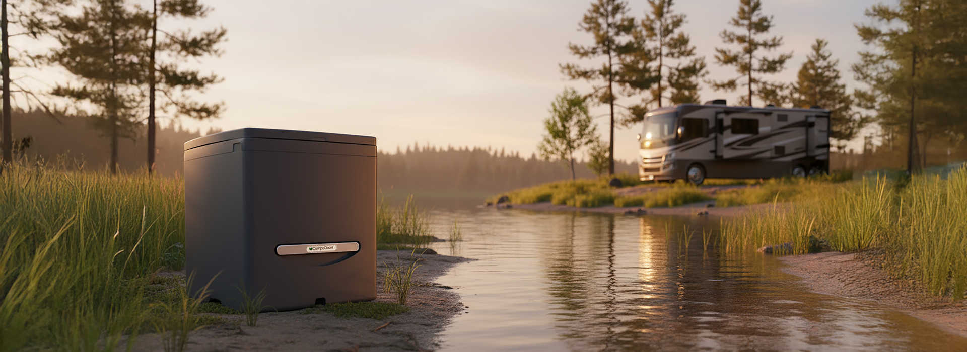 Composting toilets (like Cuddy) use natural processes to break down waste without water. Liquids and solids are kept separate: urine goes into a bottle, while solids mix with a natural bulking agent and begin to compost. An agitator helps keep things odor-free and easy to empty. Perfect for vans, boats, cabins, and tiny homes.